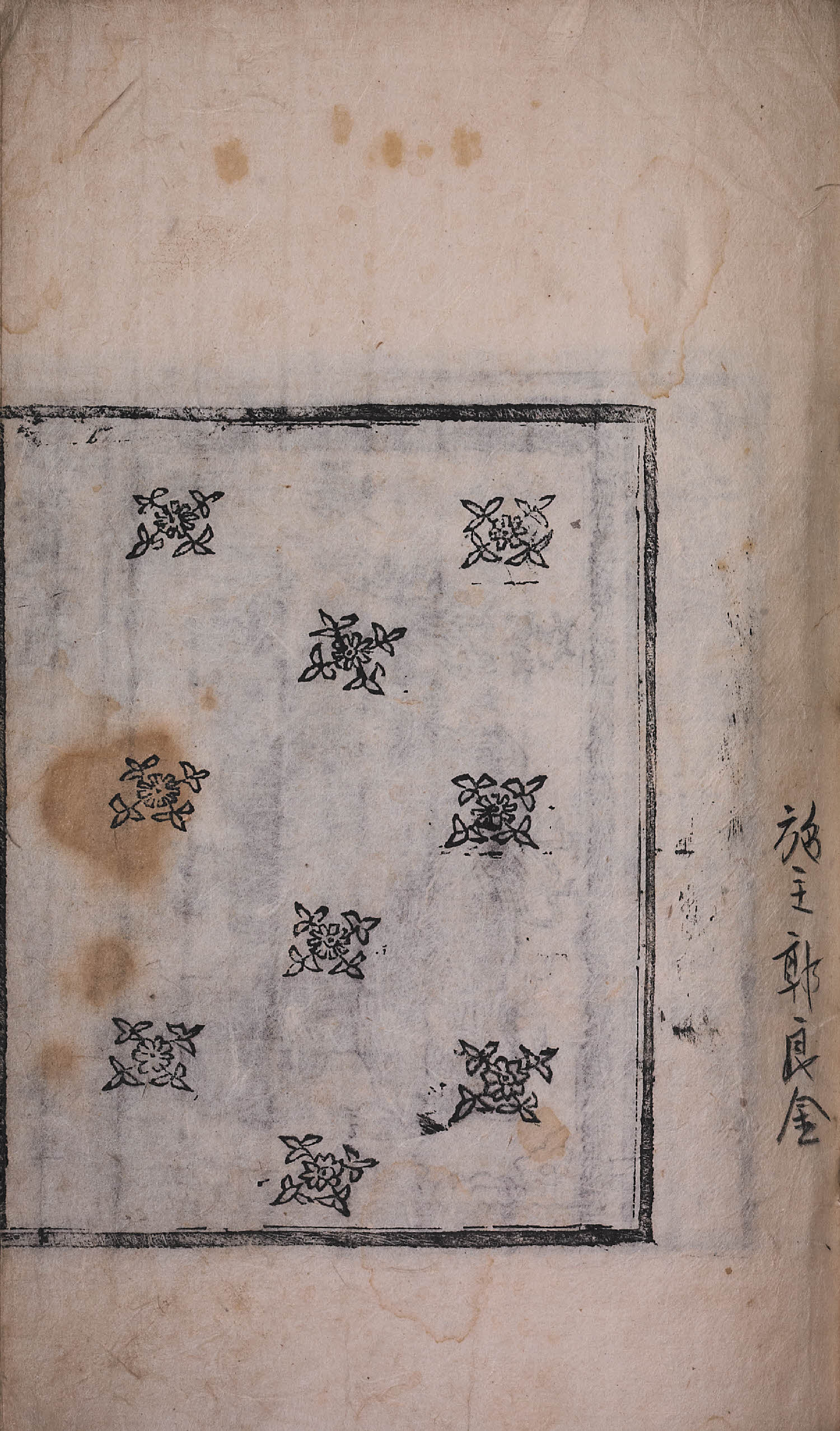 卷1(全7卷), 變相, 四周單邊(四周雙邊 混入) 半郭 21.1×17.1 cm , 有界, 8行13字, 白口(黑口 混入), 內向2葉花紋魚尾 ; 33.2×21.9 cm.