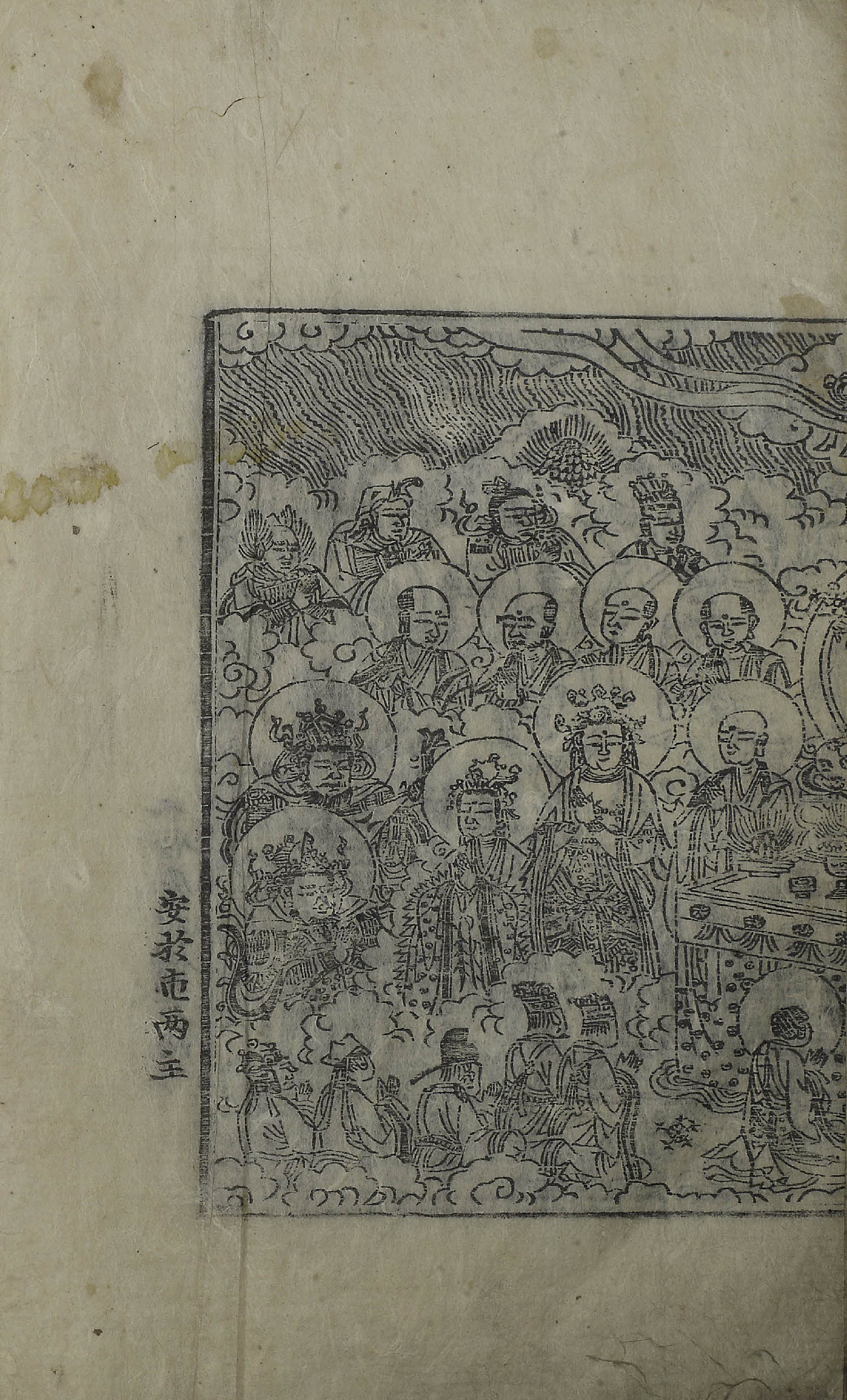 卷1(全7卷), 變相, 四周雙邊 半郭 21.0×15.6 cm , 有界, 8行13字, 白口(黑口 混入), 內向2葉花紋魚尾 ; 31.7×20.8 cm.
