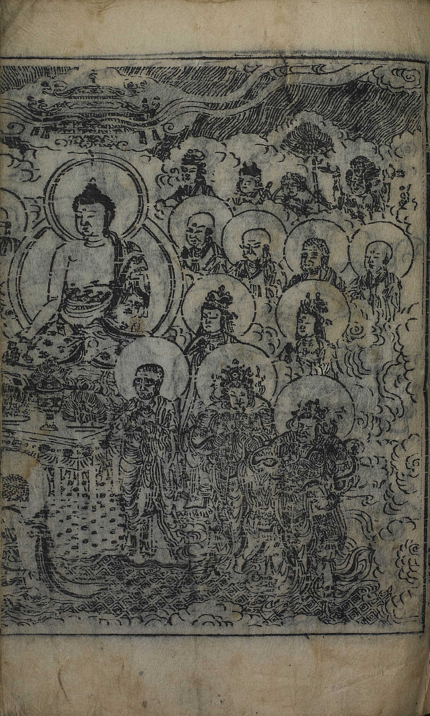 卷1, , 四周單邊 半郭 24.0×16.2 cm , 無界, 10行18字, 白口, 上下下向黑魚尾( 2,3葉花紋 混入) ; 33.2×22.2 cm.