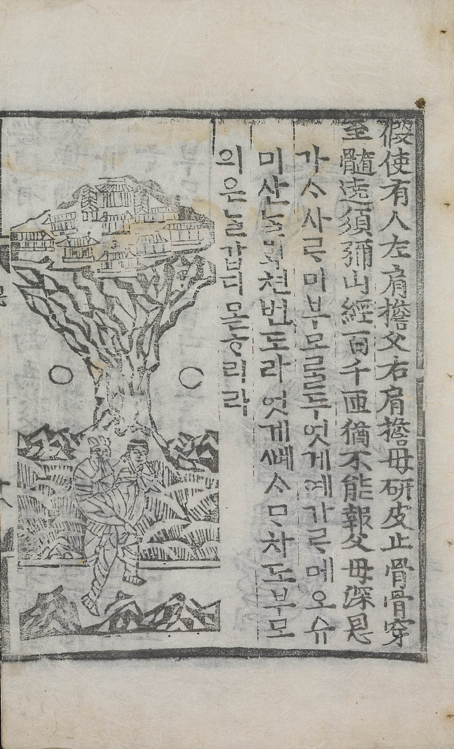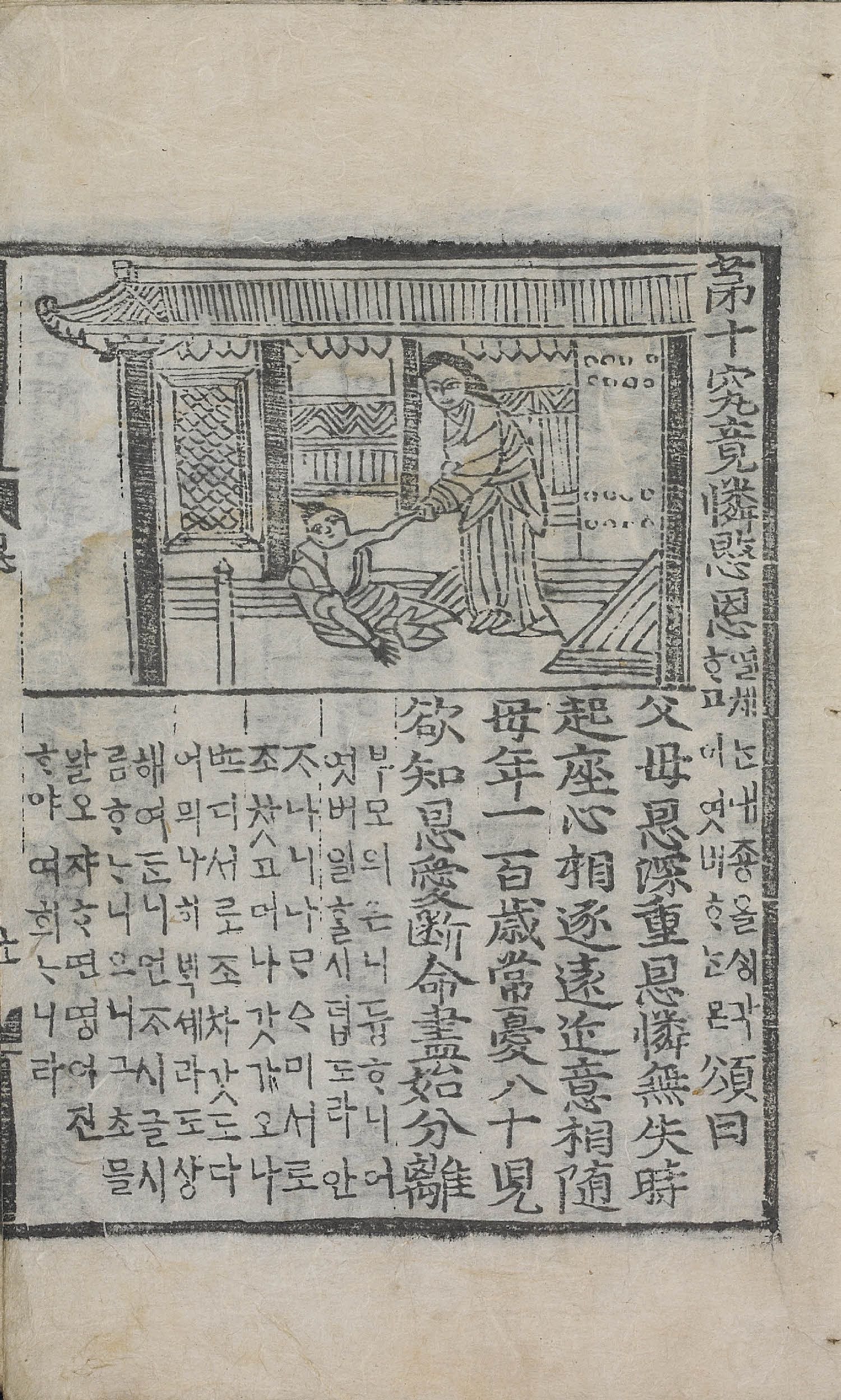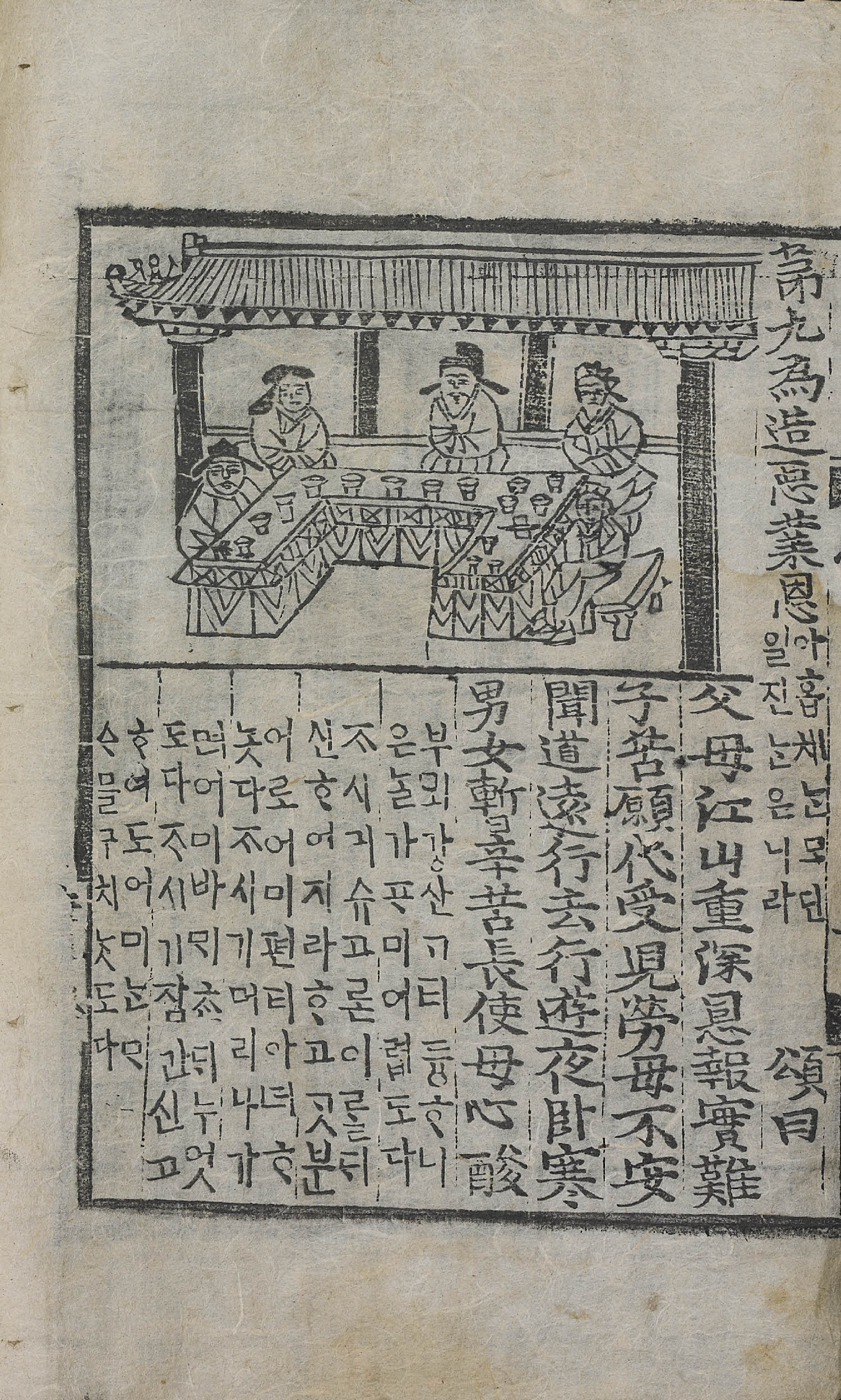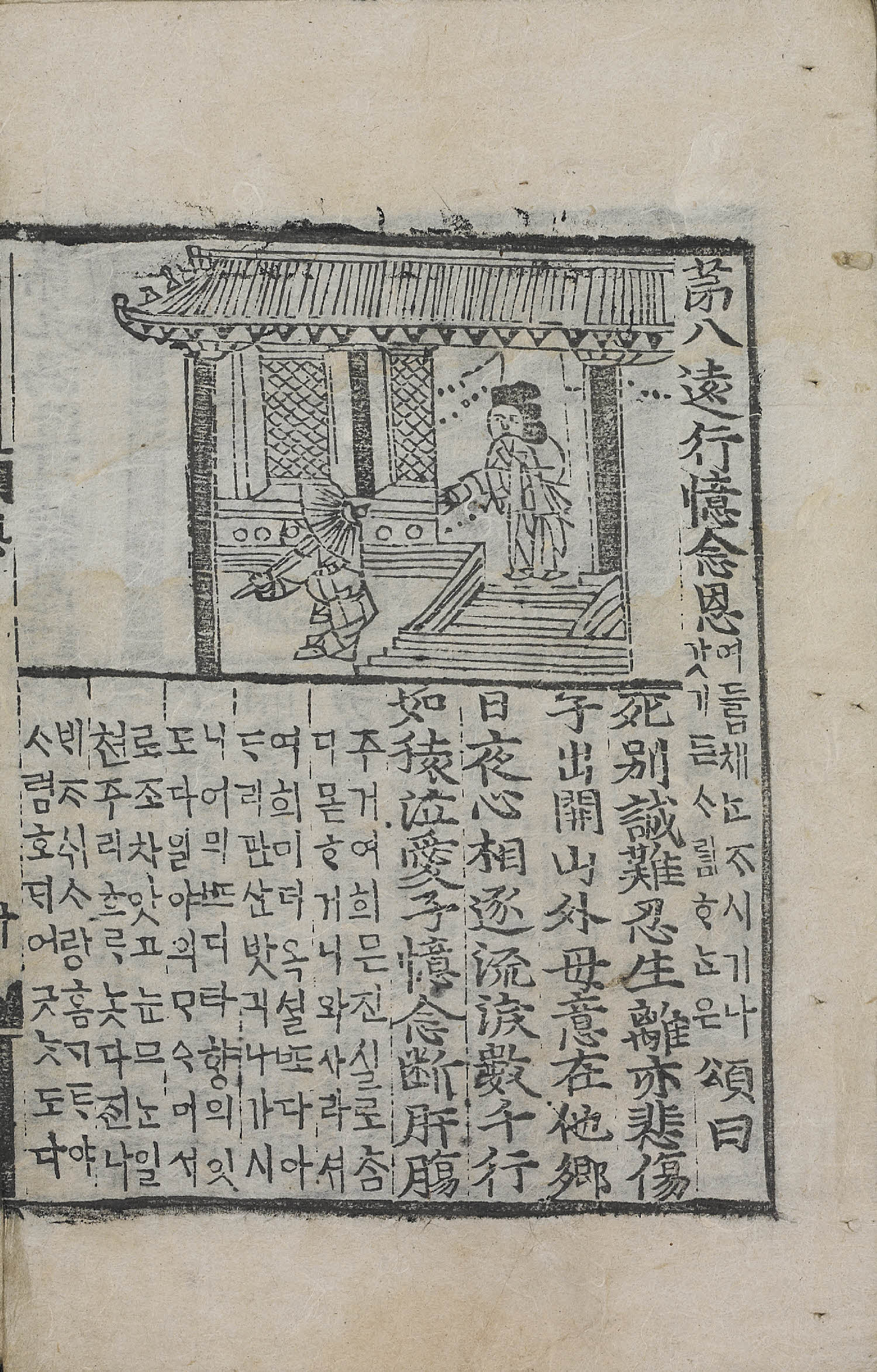 12張, 圖像, 四周單邊 半郭 18.0×14.3 cm , 有界, 10行18字, 黑口, 上下內向黑魚尾 ; 26.9×17.2 cm.