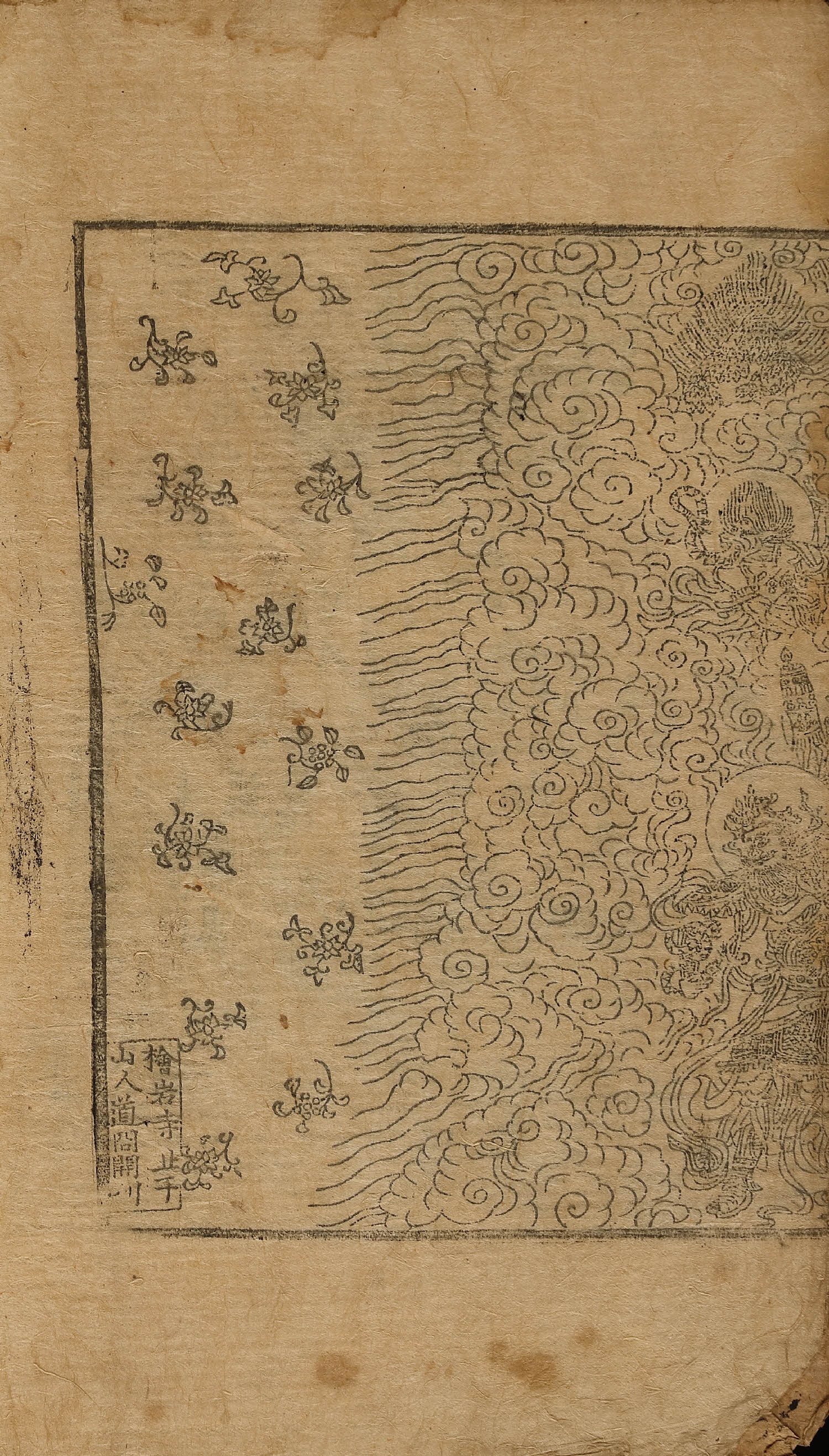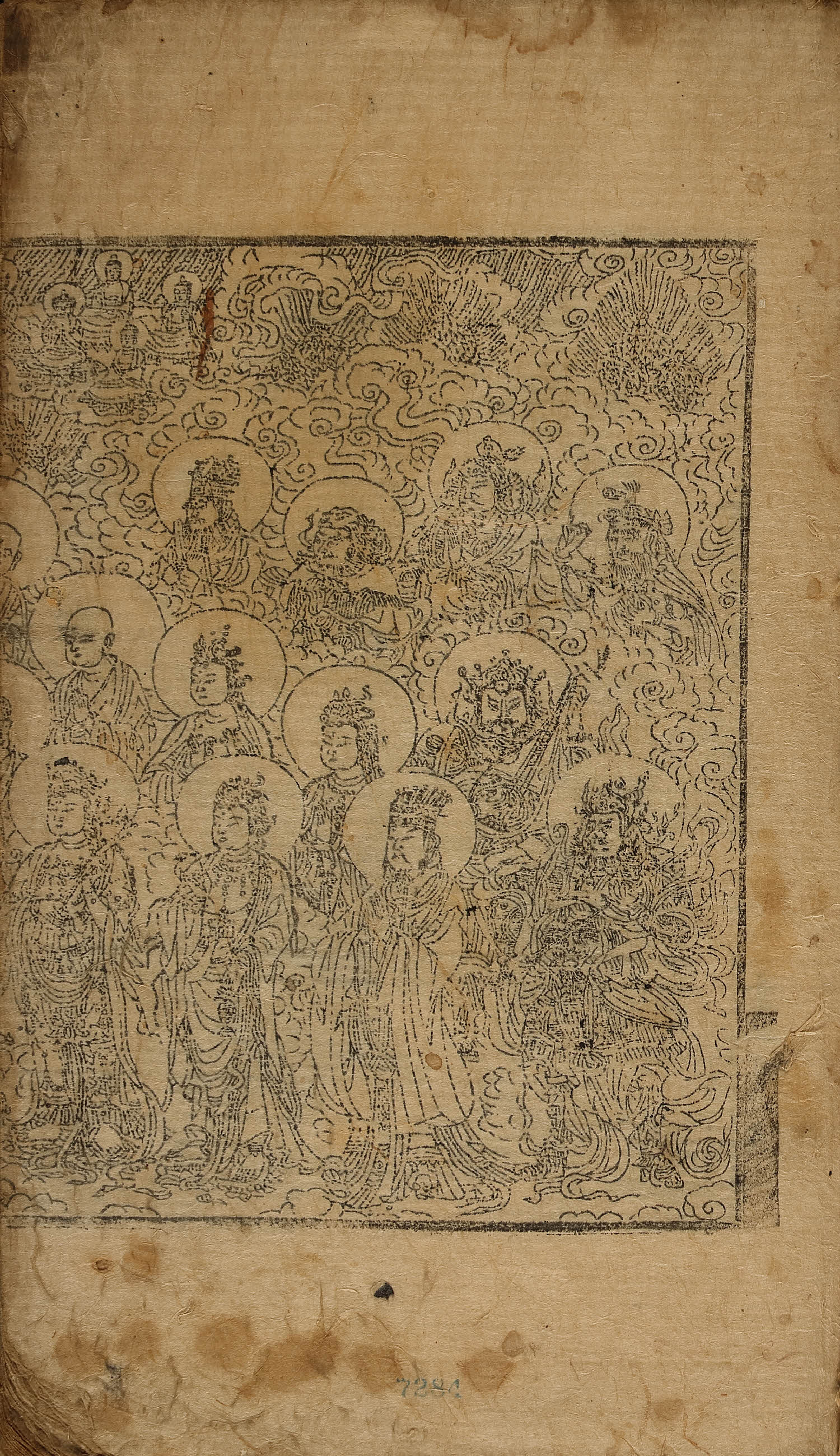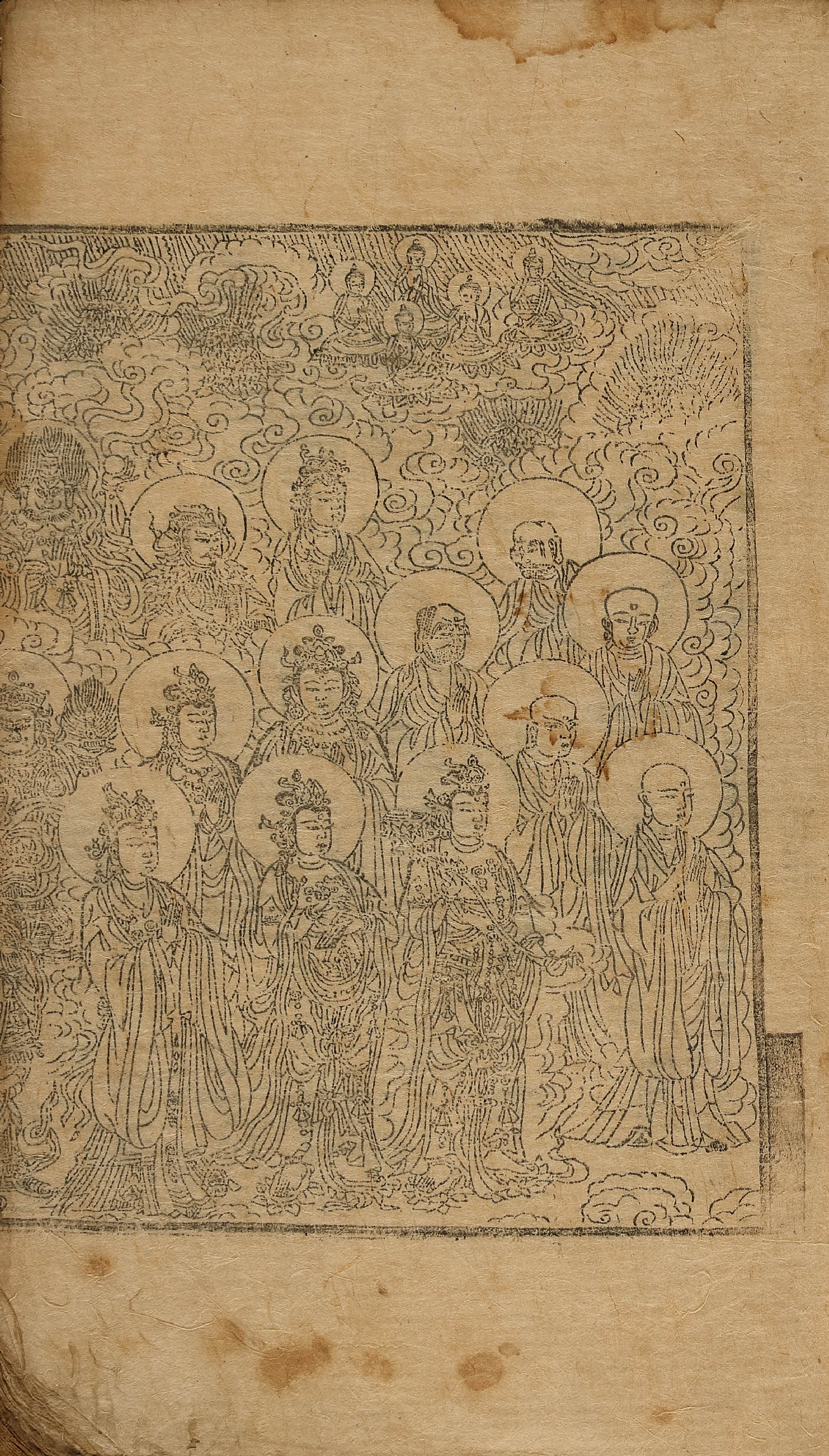 卷1, 變相, 四周雙邊 半郭 22.8×16.2 cm , 有界, 8行13字, 黑口, 內向黑魚尾(內向混葉黑魚尾 混入) ; 33.8×21.1 cm.