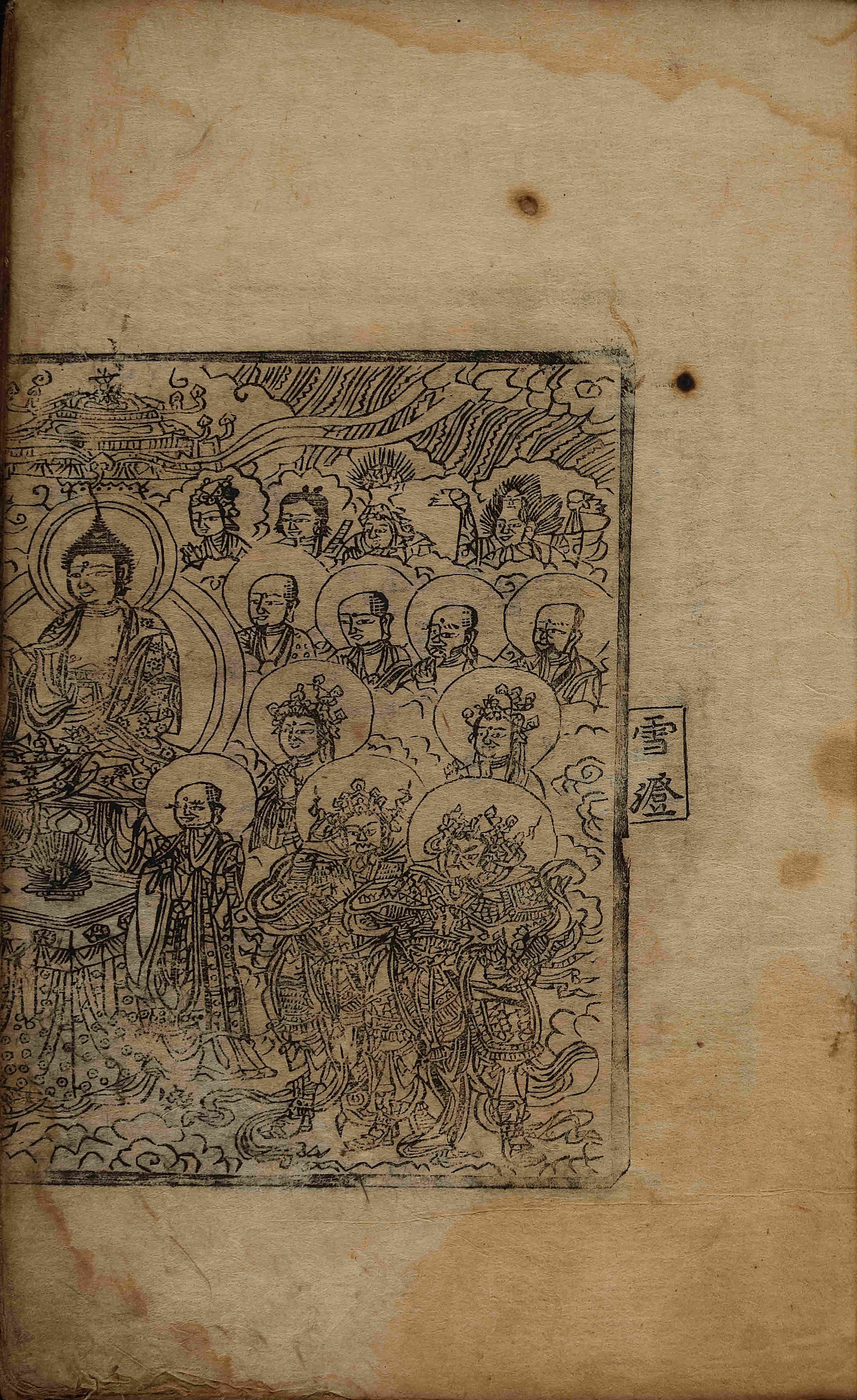 - 卷1, 變相 / 圖像, 四周雙邊(四周單邊 混入) 半郭 19.7×16.0 cm , 有界, 8行13字, 白口(下花口('下'字 등 陰刻), 黑口 混入), 上下向2葉花紋魚尾(上下向1葉花紋魚尾 混入) ; 32.1×21.8 cm.