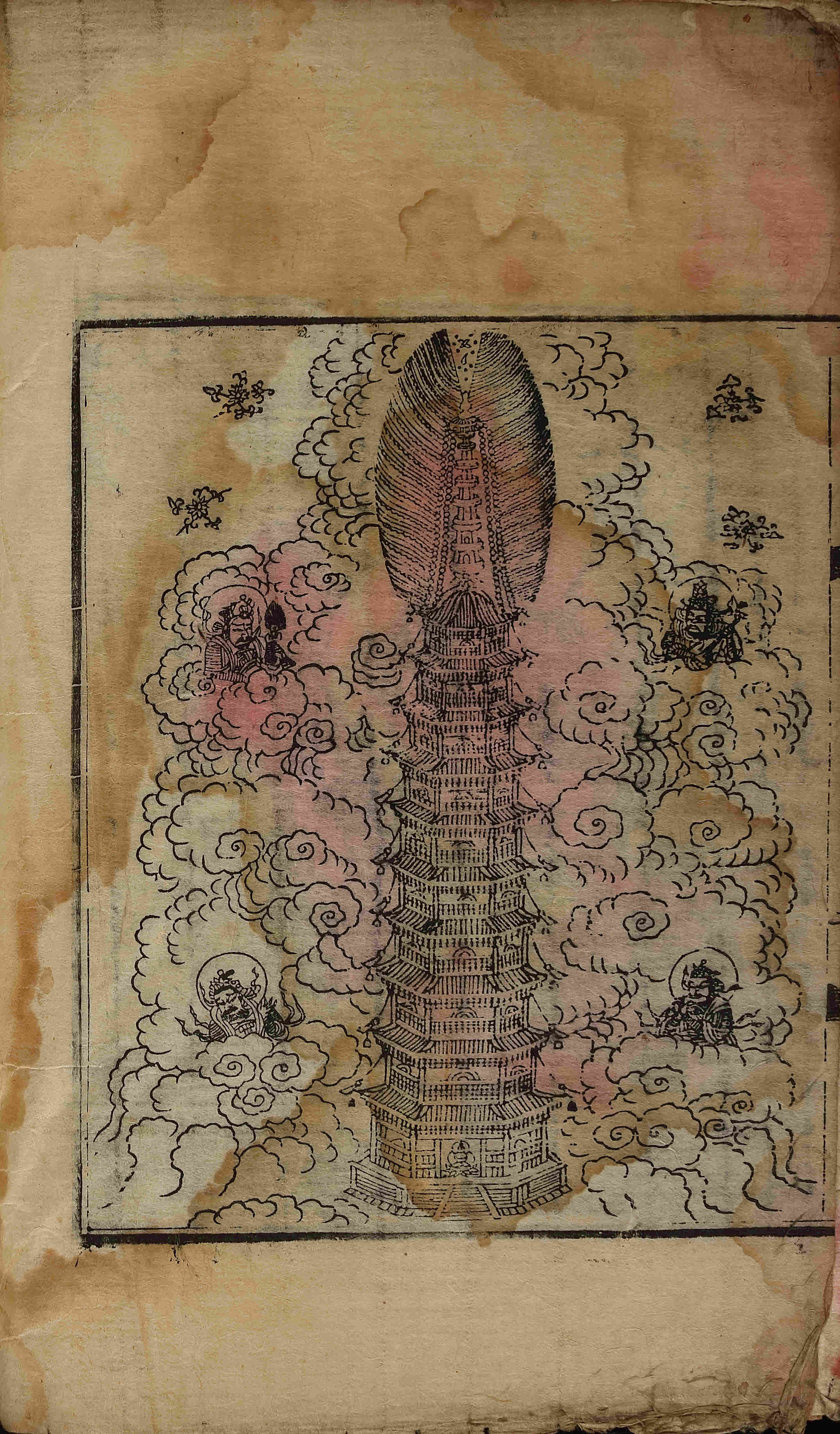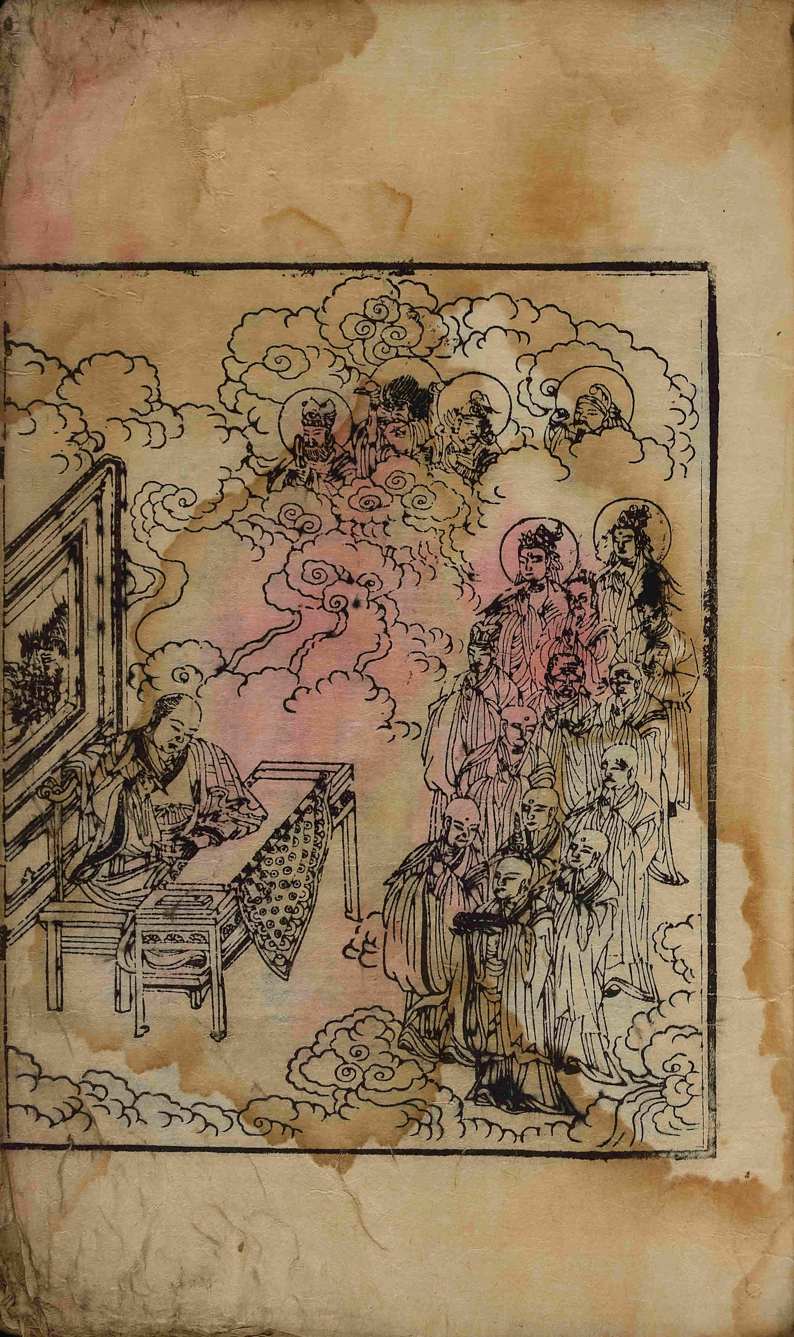 - 卷1, 變相 / 圖像 / 願牌圖, 四周單邊 半郭 25.6×20.0 cm , 有界, 9行 大字16字 小字低1字20字, 白口, 內向黑魚尾(上魚尾 '一'字 陰刻, 下魚尾 '林', '一', '二'字 등 陰刻 混入) ; 38.7×25.1 cm.