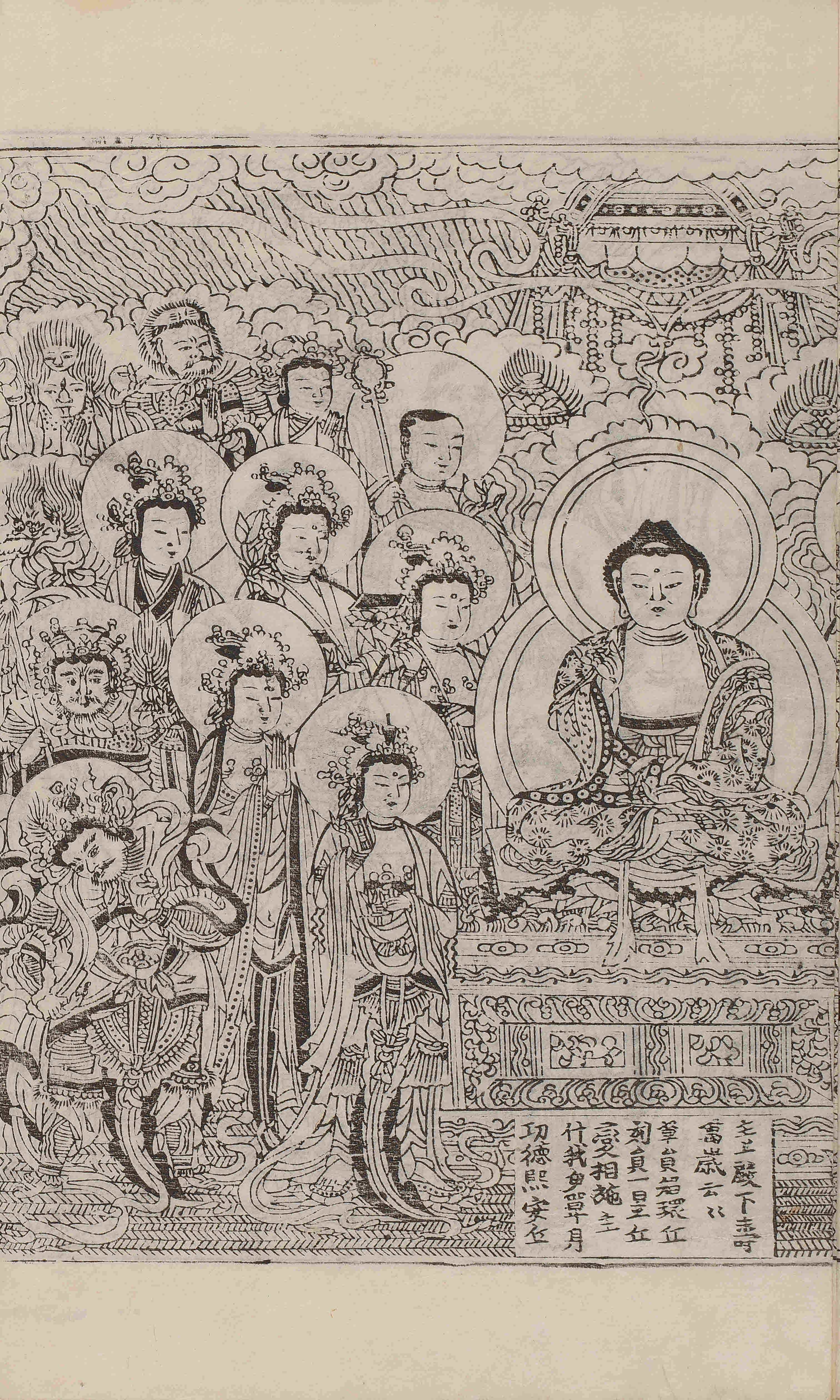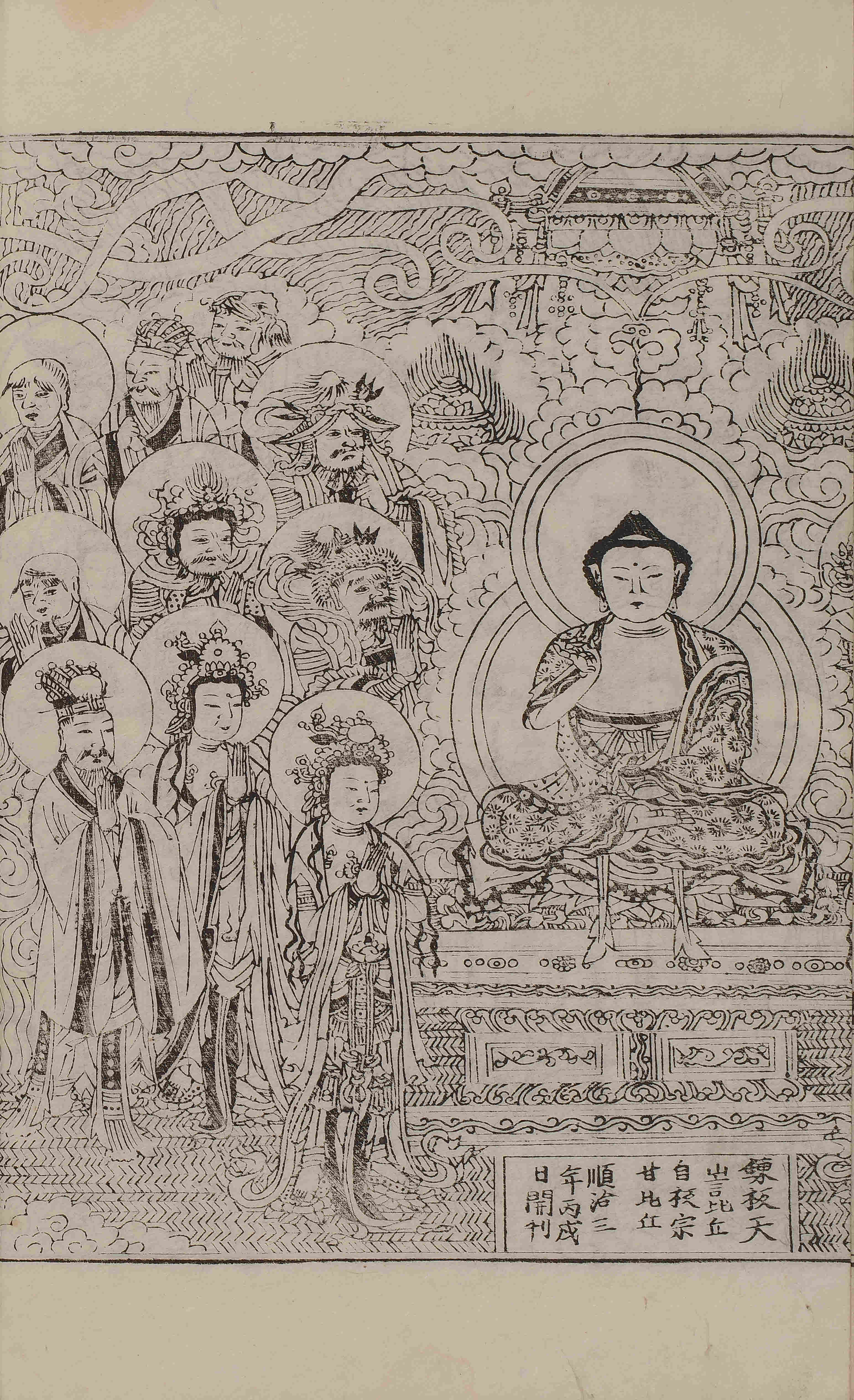 - 卷1, 變相 / 圖像, 四周單邊 半郭 21.5×16.0 cm , 有界, 8行13字, 白口(黑口, 下黑口 混入), 內向2葉花紋魚尾(黑魚尾, 1葉 花紋魚尾, 上下向3葉花紋魚尾下上向2葉花紋魚尾, 內向混葉花紋魚尾 등 混入) ; 32.2×21.5 cm.
