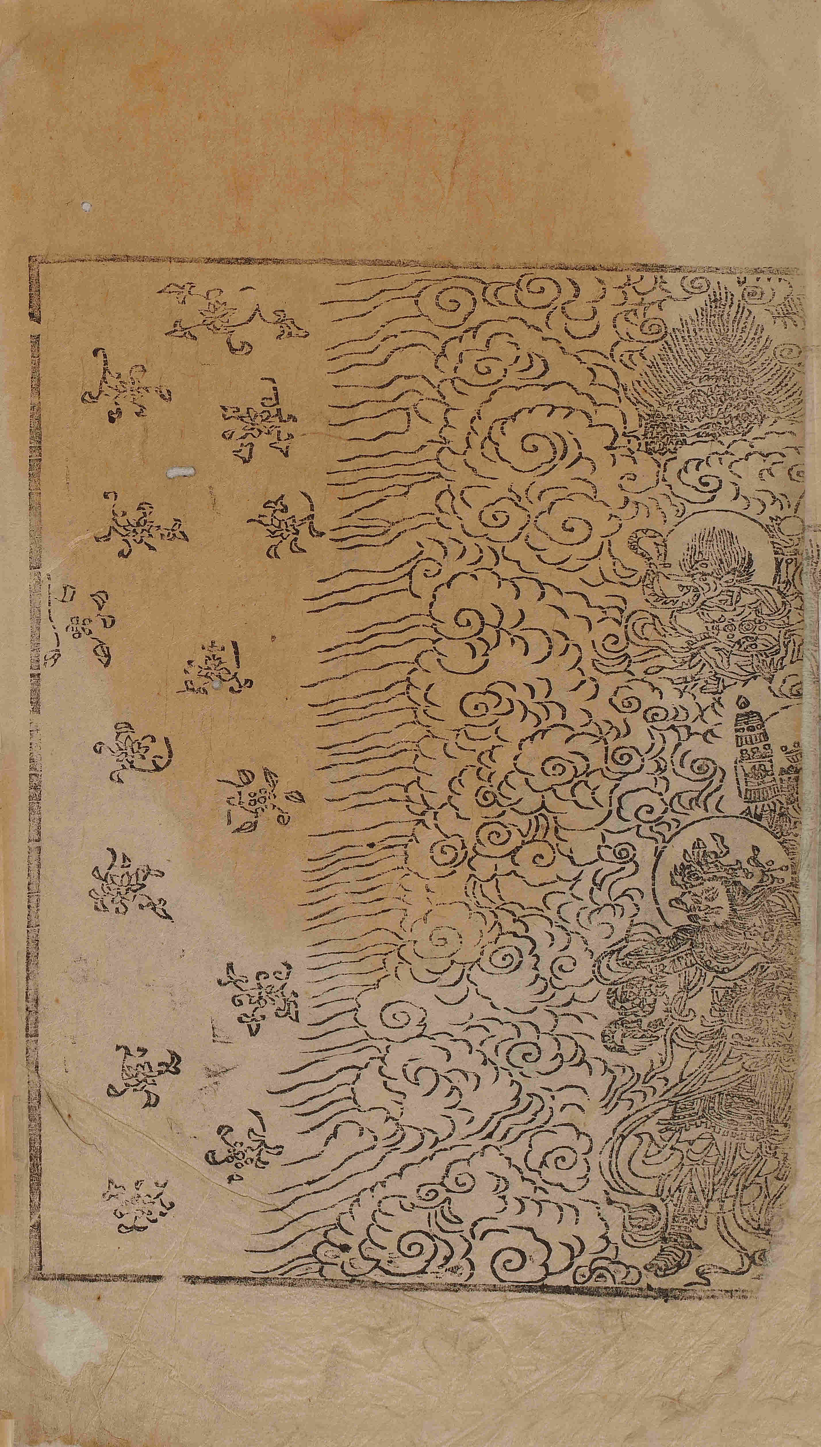卷1, 變相, 四周單邊 半郭 22.7×15.8 cm , 有界, 8行13字, 黑口, 內向黑魚尾 ; 32.6×20.1 cm.