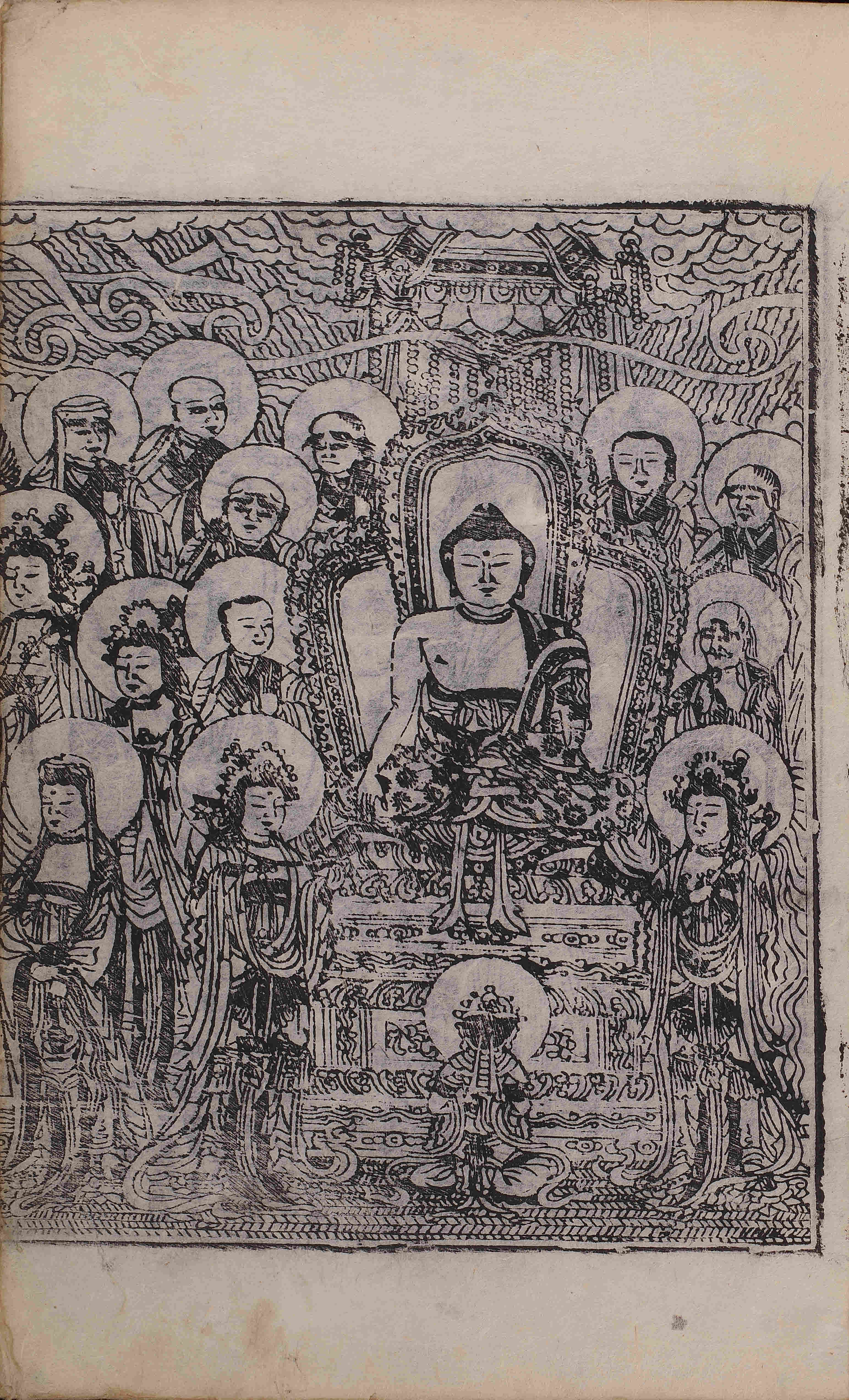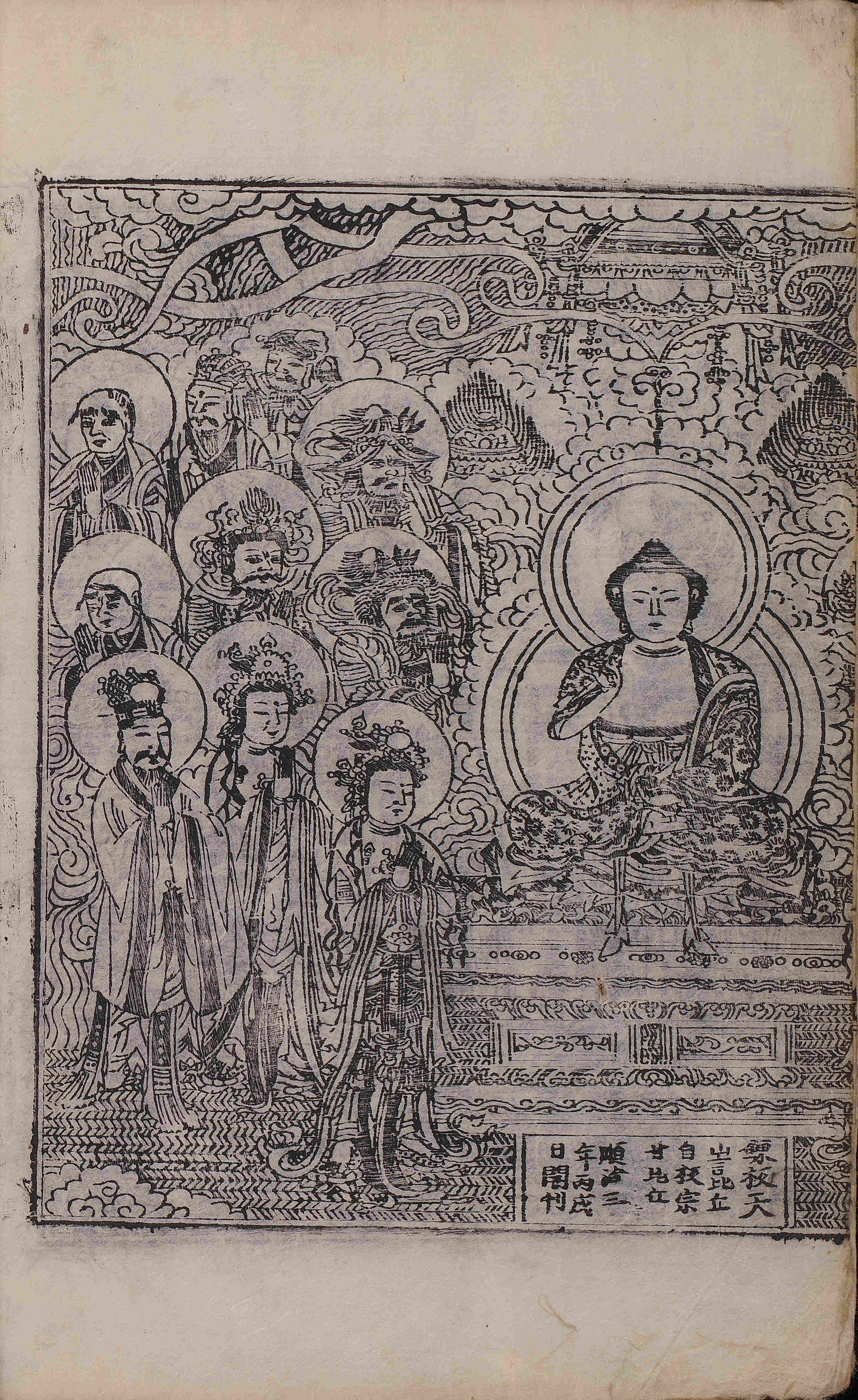 - 卷1, 變相 / 圖像, 四周單邊 半郭 22.9×16.2 cm , 無界(有界 混入), 10行18字, 白口, 上下下向黑魚尾(1, 2, 3, 4葉花紋魚尾混入, 下魚尾 '双'字 등 陰刻 混入) ; 34.4×23.2 cm.