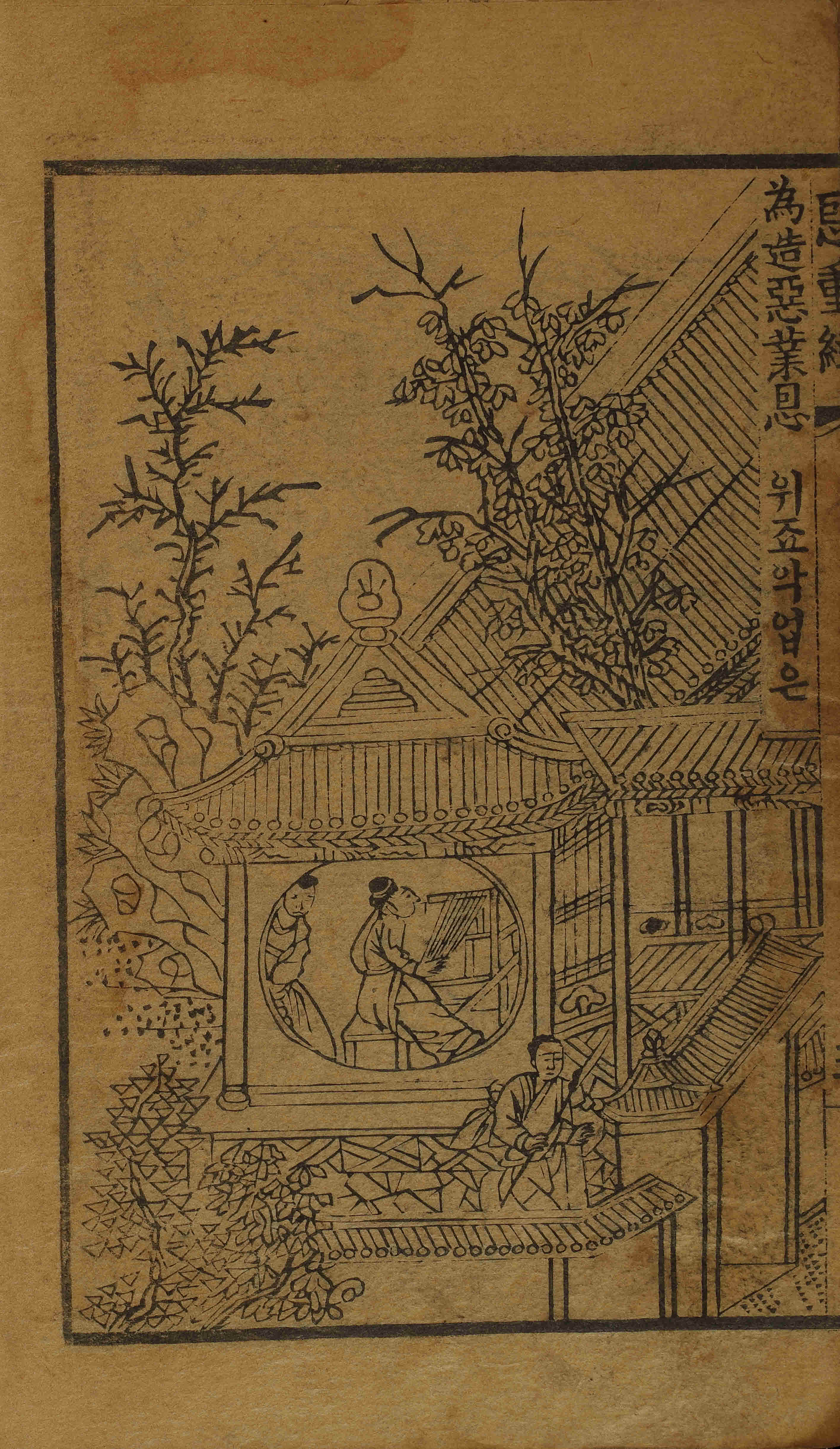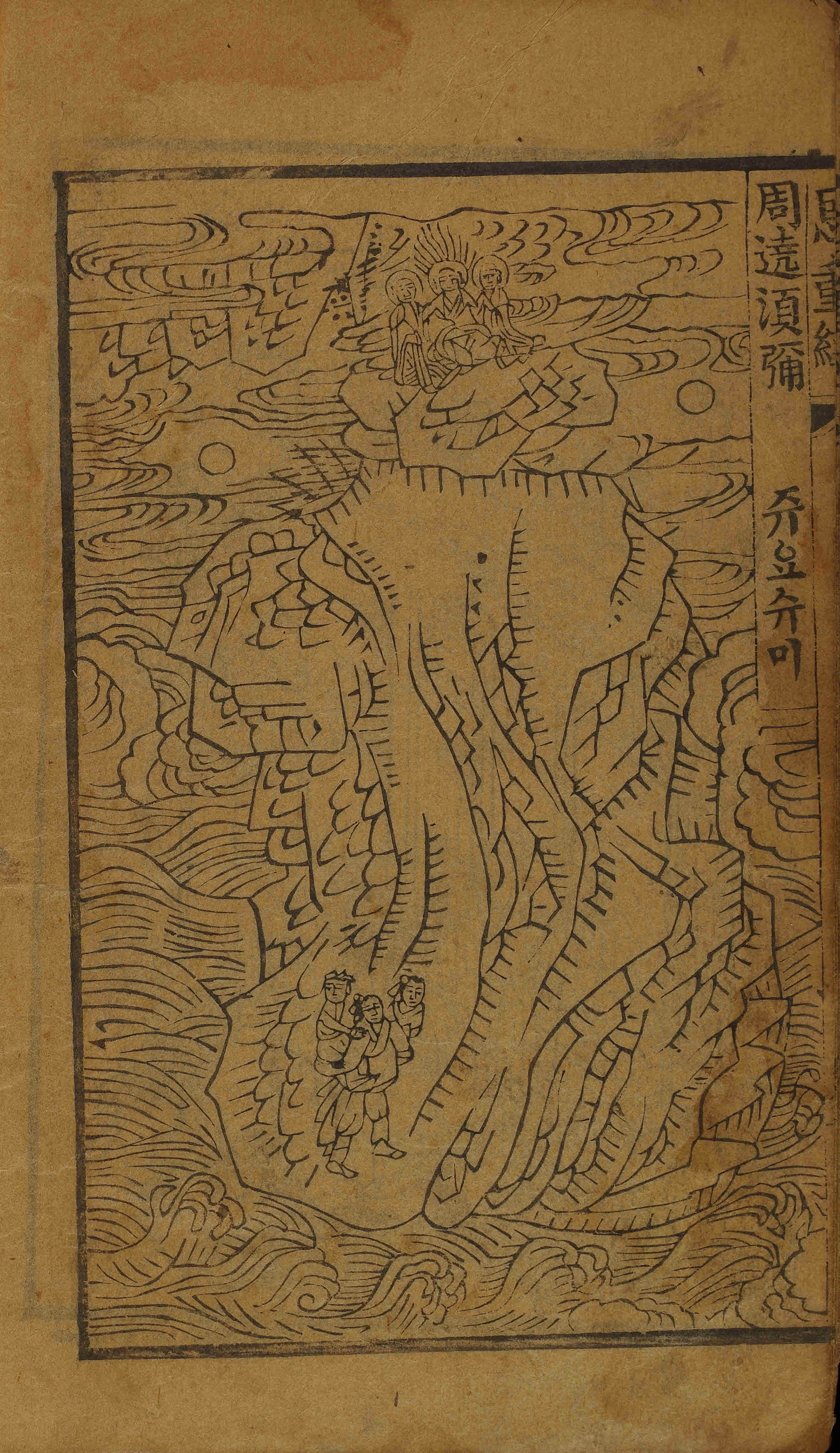 - 41張(圖像: 張次 第1-7張 / 恩重經: 張次 第1-34張), 圖像, 四周單邊 半郭 16.8×11.3 cm , 有界, 10行20字, 上花口('恩重經' 陽刻)下白口, 上下向黑魚尾 ; 22.7×15.0 cm.