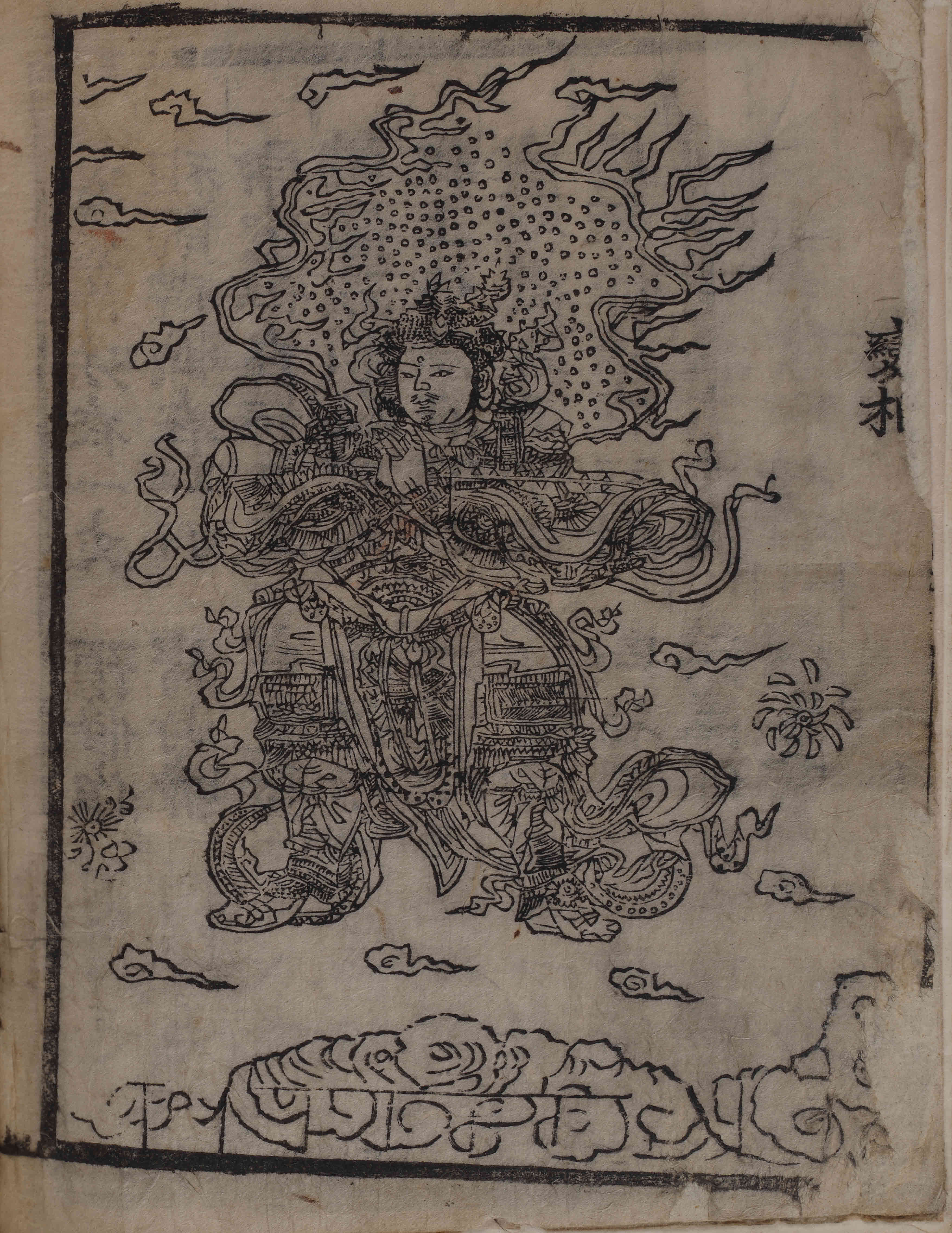 卷上, 圖像 / 願牌圖 / 科表, 四周雙邊 半郭 23.1×17.8 cm , 有界, 10行18字, 白口, 內向2葉花紋魚尾 ; 25.9×21.9 cm.