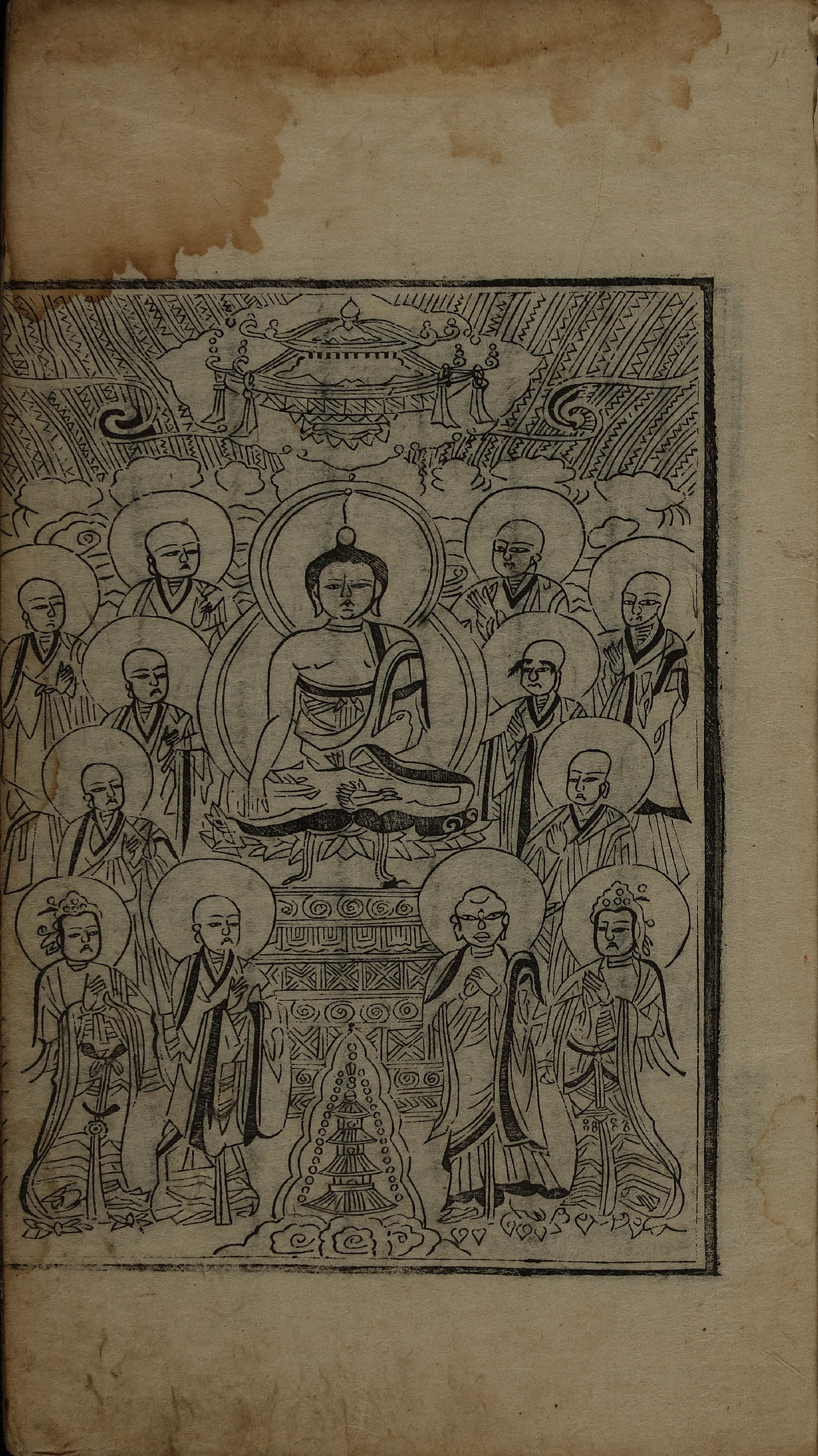 - 卷1, 變相, 四周單邊 半郭 19.6×13.4 cm , 無界, 10行20字, 白口, 無魚尾(下上向1葉花紋魚尾, 上下向2葉花紋魚尾, 內向黑魚尾, 內向2葉花紋魚尾, 上魚尾 '경'字 등 陰刻 混入) ; 28.7×17.7 cm.
