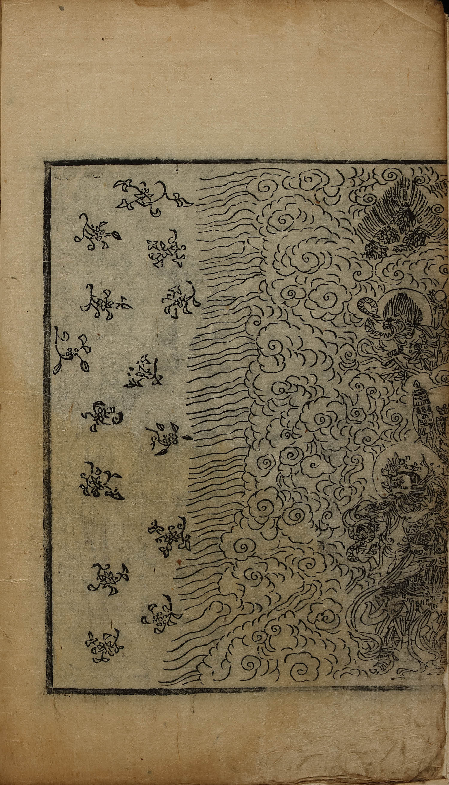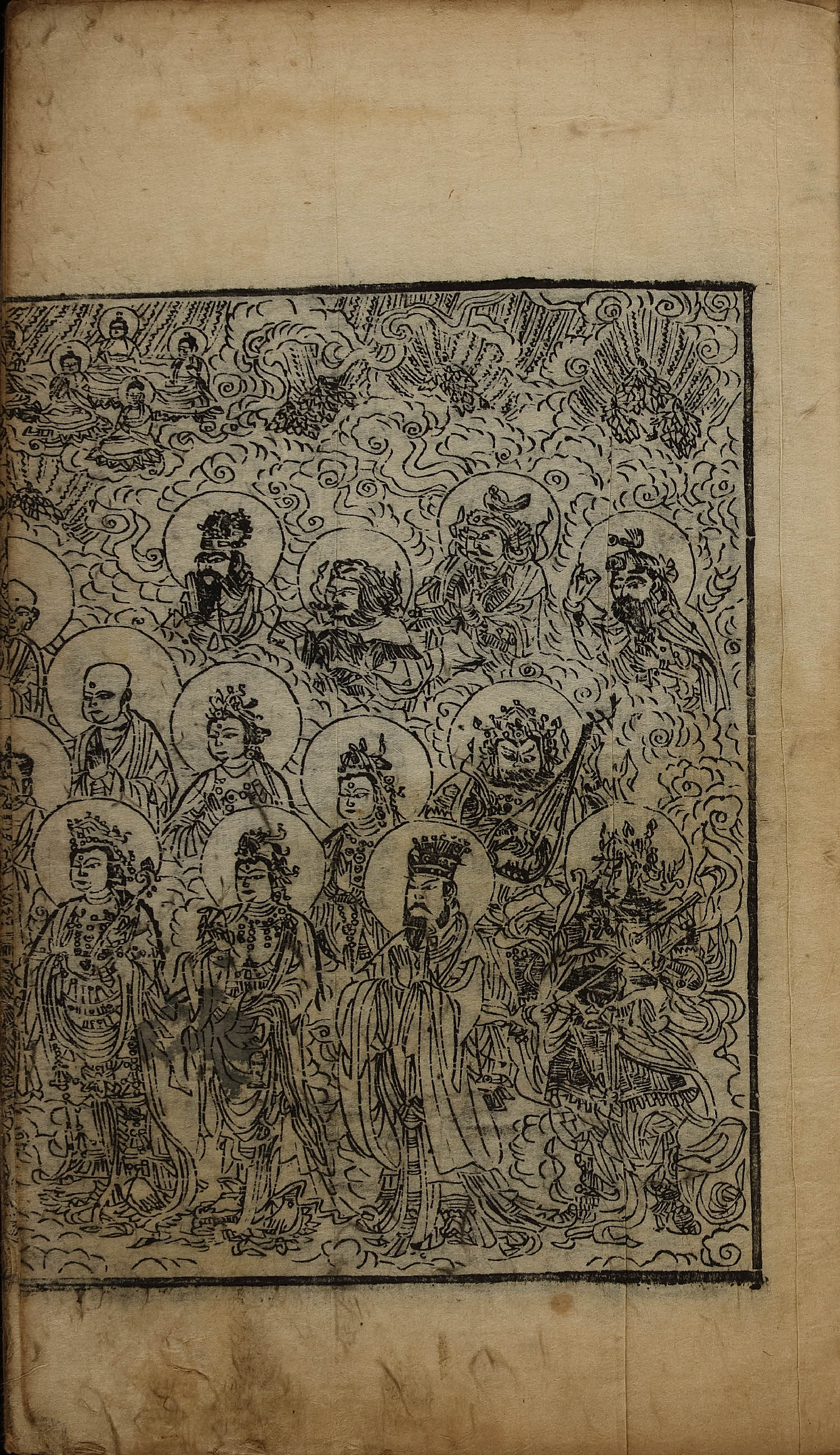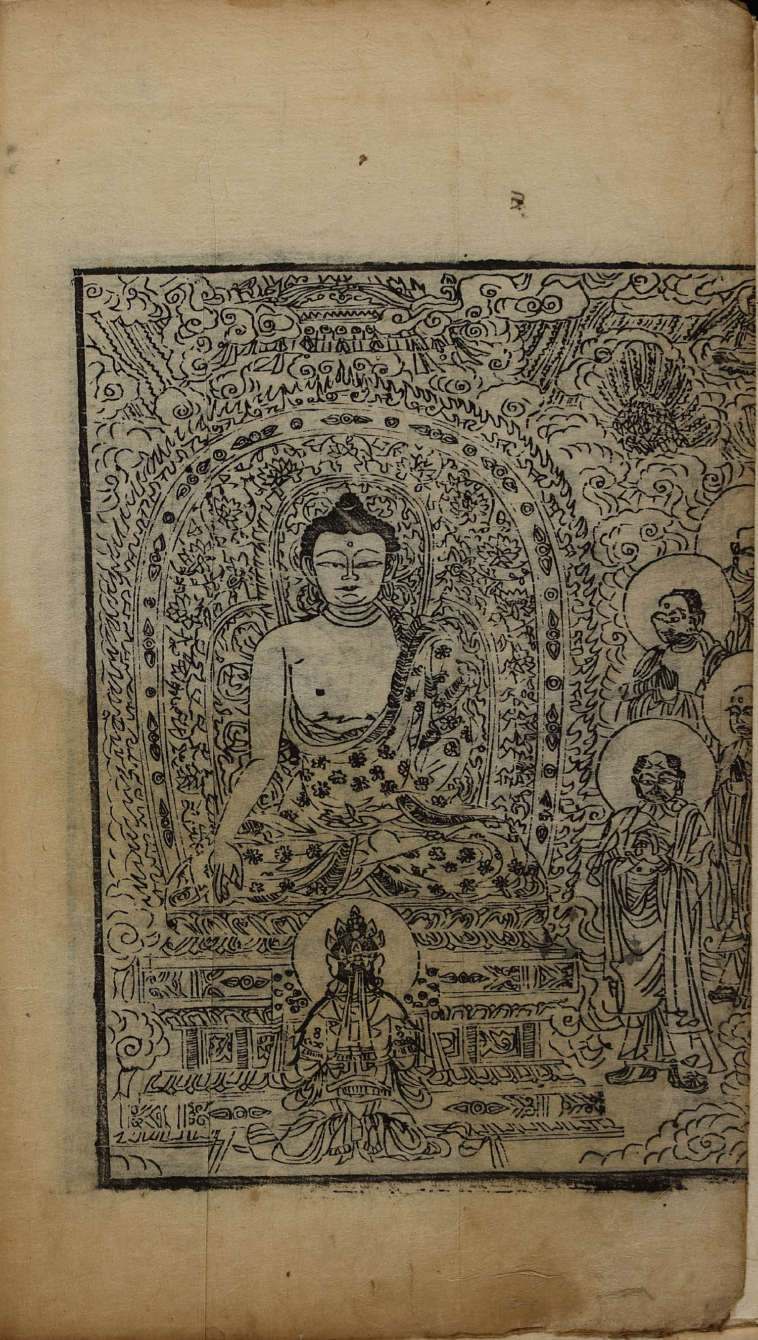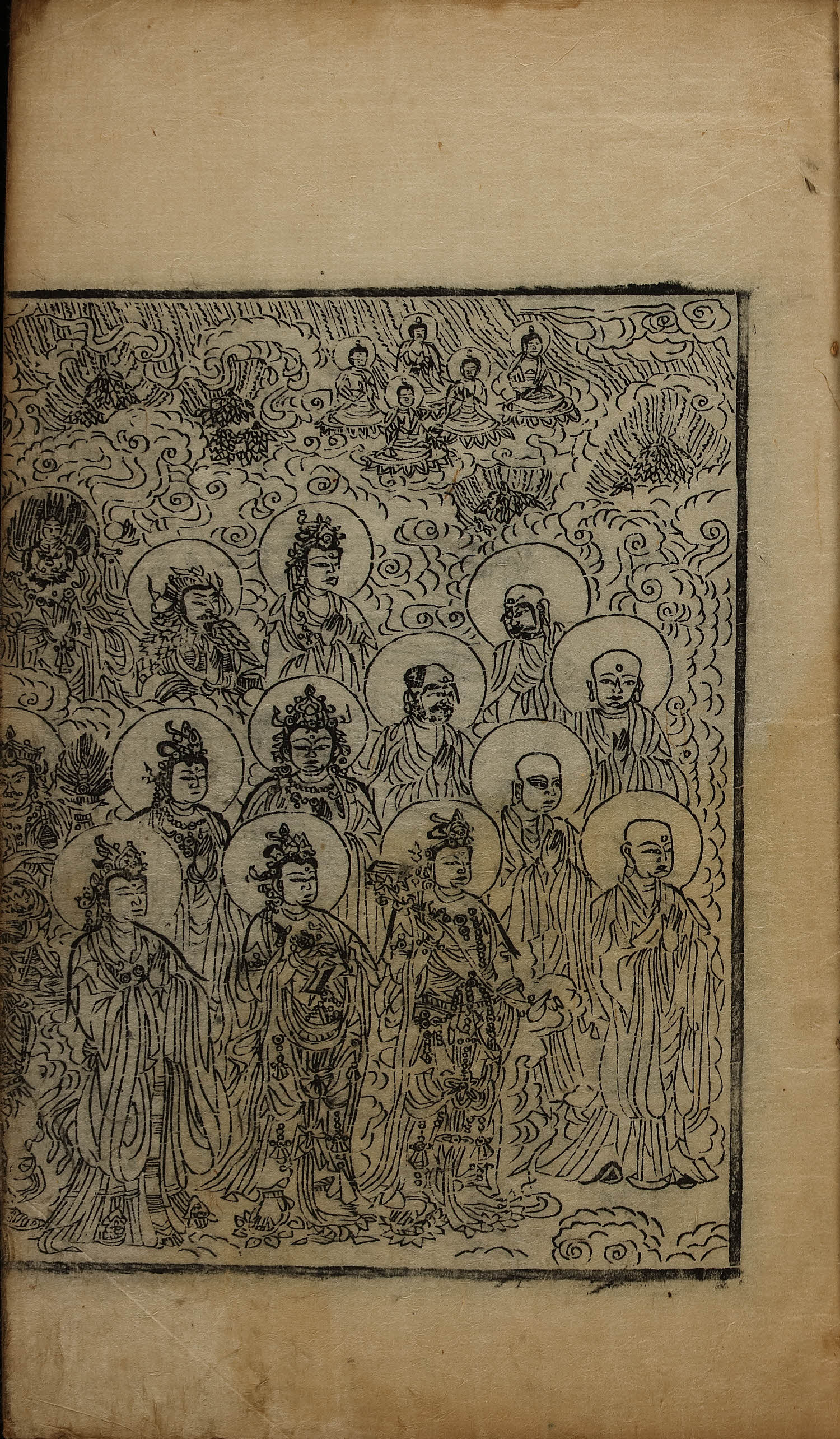 - 卷1, 變相, 四周單邊 半郭 23.9×16.1 cm , 無界, 10行18字, 白口(上花口('玄敏' 陰刻) 混入), 上下下向黑魚尾(內向3葉花紋魚尾, 上下下向3葉花紋魚尾, 上魚尾 '井'字 등 陰刻, 下魚尾 '玉'字 등 陰刻 混入) ; 34.2×31.4 cm.